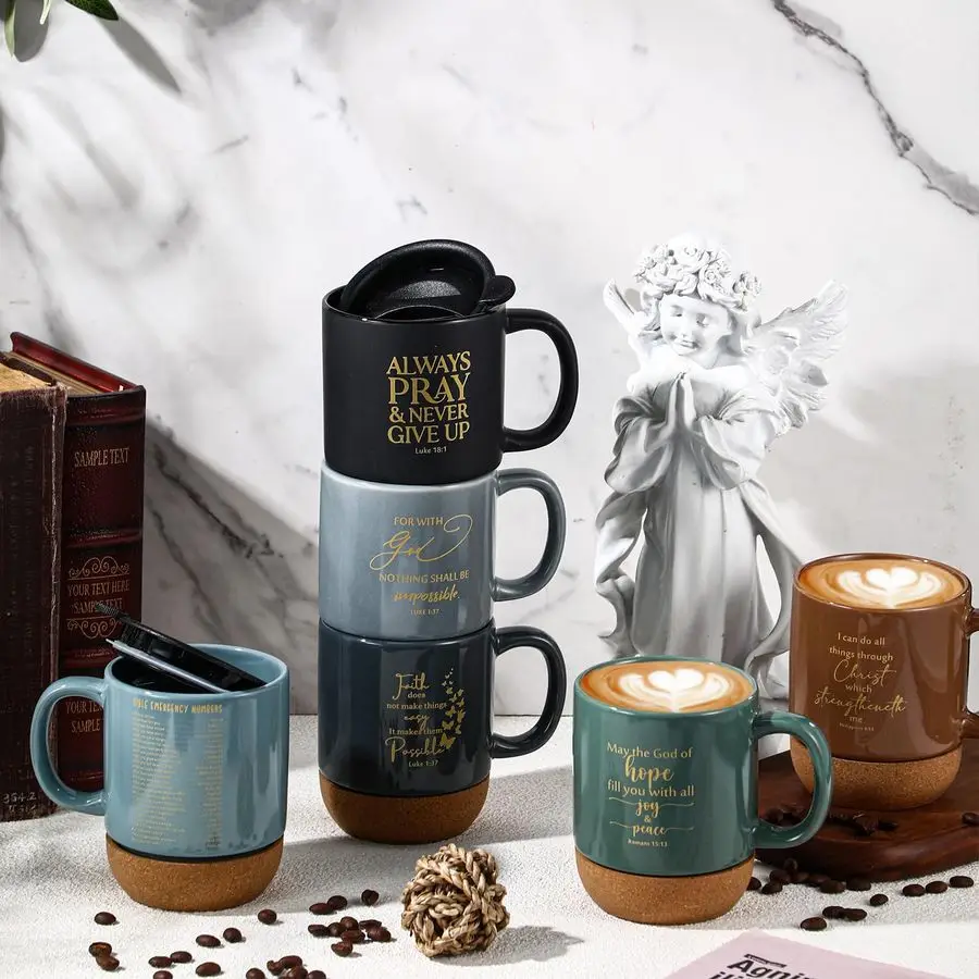 Sufficient Quantity this set contains 12 set Christian coffee mugs with lids and cork bottom, which meet your needs of using and sharing, and can be given as appreciation gifts to church members, employees, coworkers, friends and family