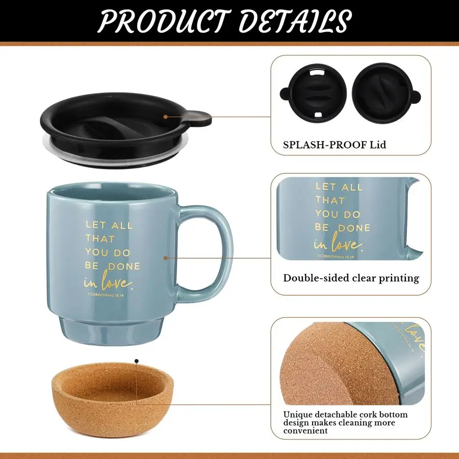 Ceramic Mug with Cork Bottom Our Christian mug is made of sturdy ceramic material, the cork bottom prevents scratches, protects your table, and reduces the sound when placed, suitable for office, home, church and other occasions. The cork bottom of the cup is removable and is not dishwasher safe