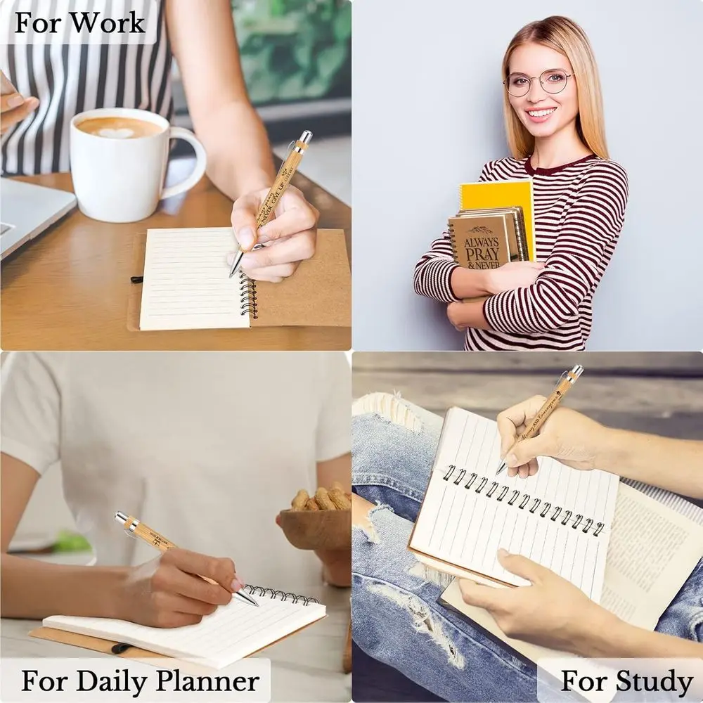 Color: Brown Theme: Book Sheet Size: 5×8 inches Pages: 160 Cover Material: Engineered Wood Style: Rustic Ruling Type: Ruled Special Feature: Lightweight Number of Items: 1 This product includes a set of 160 religious notebook and pen sets, consisting of 80 mini bible notebooks for note-taking and 80 ballpoint pens. The size of each book is approximately 5.5 x 3.9 inches (14 x 10 cm), and the pen measures about 5.5 inches (14 cm). These quantities are designed to meet your usage needs and provide replacements. The church notebooks and pens are adorned with various bible verses, offering warm and motivational messages that can inspire positivity and help individuals persevere through challenging times. The spiral-bound journal notebooks are crafted from 300 GSM kraft paper for the cover and contain 50 lined sheets inside. They feature a rubber pen loop for easy pen storage. The pens are made from high-quality bamboo wood, ensuring a lightweight and safe writing instrument that delivers a smooth writing experience. These Christian journal and pen sets are versatile and can be used for a variety of occasions, including church events, Thanksgiving, Christmas, Mother's Day, Father's Day, Easter, back-to-school, bible study, school, and office settings. They create an uplifting atmosphere wherever they are used. Each prayer journal is designed with 50 sheets of lined paper, totaling 100 pages, providing ample space for writing down bible verses or recording personal thoughts and emotions.
