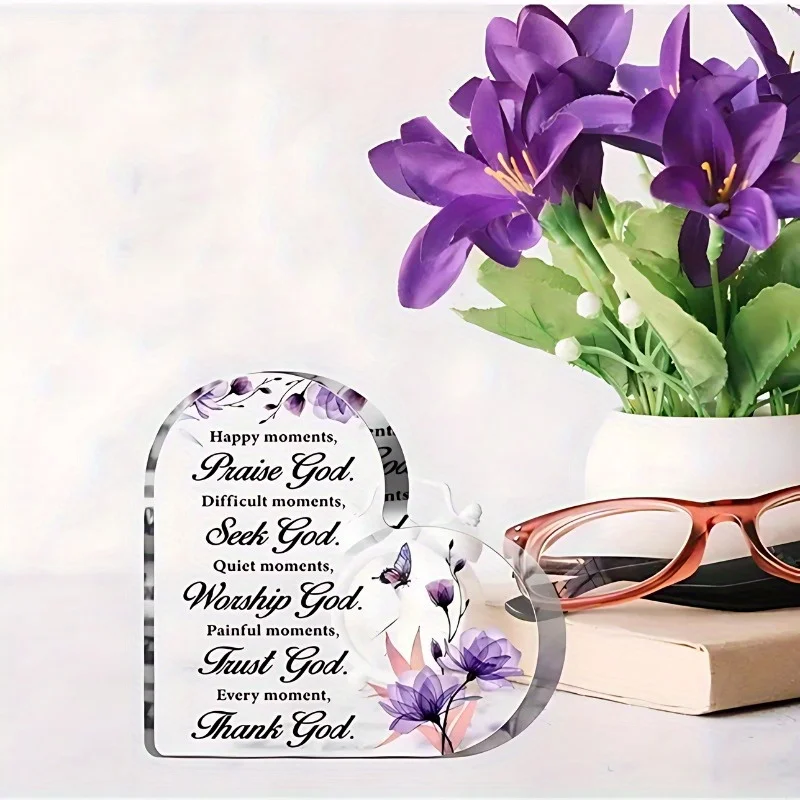 Christian heart Bible decor, women's religious gift. Inspirational quote, prayer-friendly. Purple, room/home/office desk.