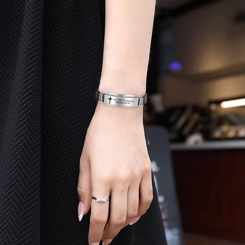 Cross Jesus Scripture Quote Bracelet Christian Bible Verse Stainless Steel Bracelets Silicone Wristband
